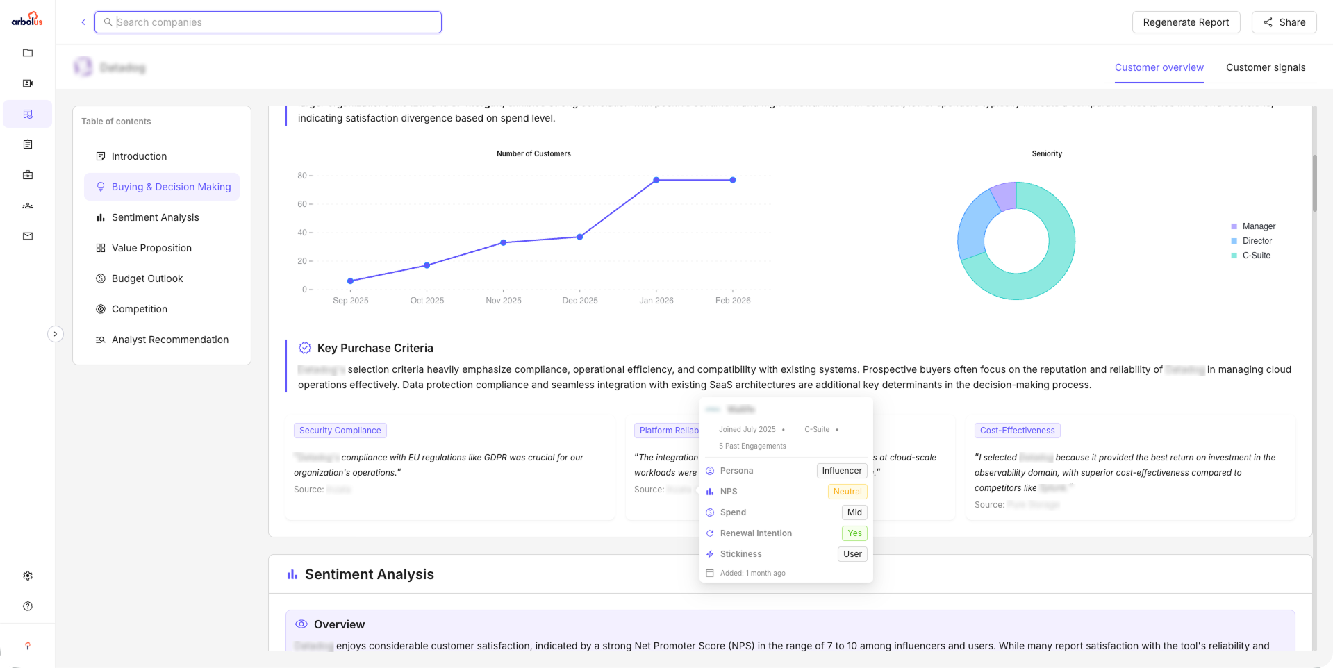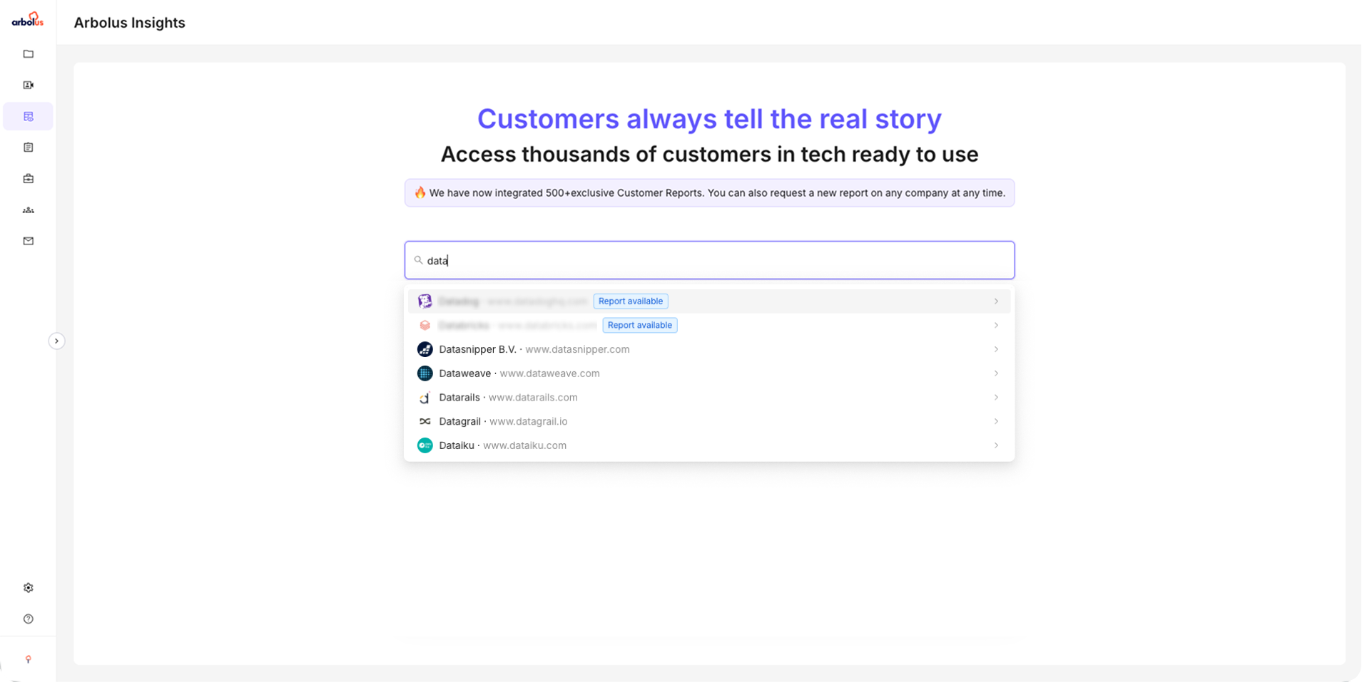 The Arbolus Customer Library gives you immediate access to the "Voice of the Customer." Evaluate product-market fit, identify churn risks, and map competitive moats using the world’s largest database of proprietary B2B reviews.